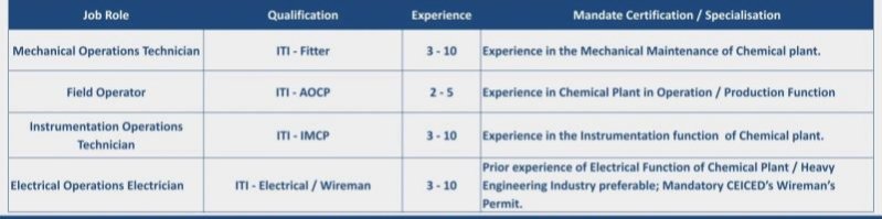 Positions :- Technician, Field Operator & Others