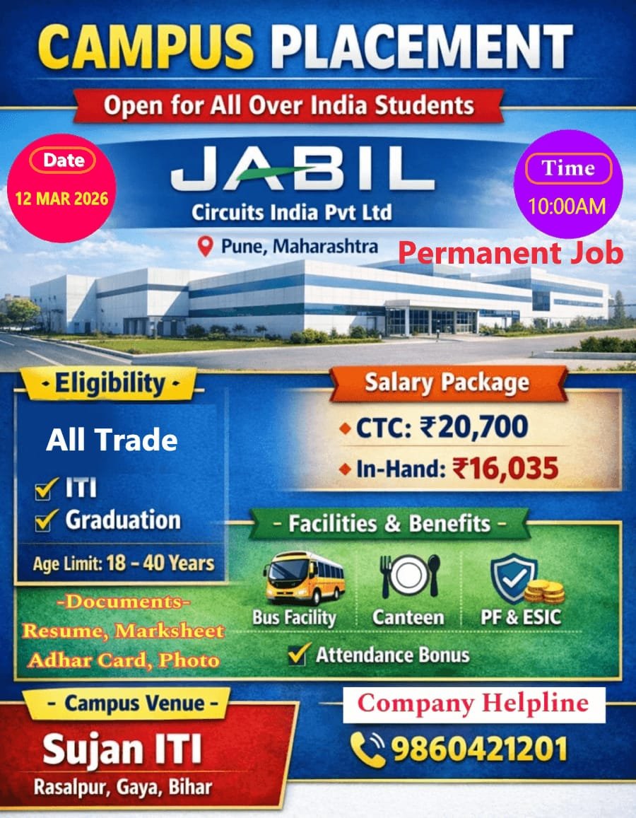 Jabil Circuits India Pvt Ltd Campus Placement 2026 | ITI / Graduation | March 2026