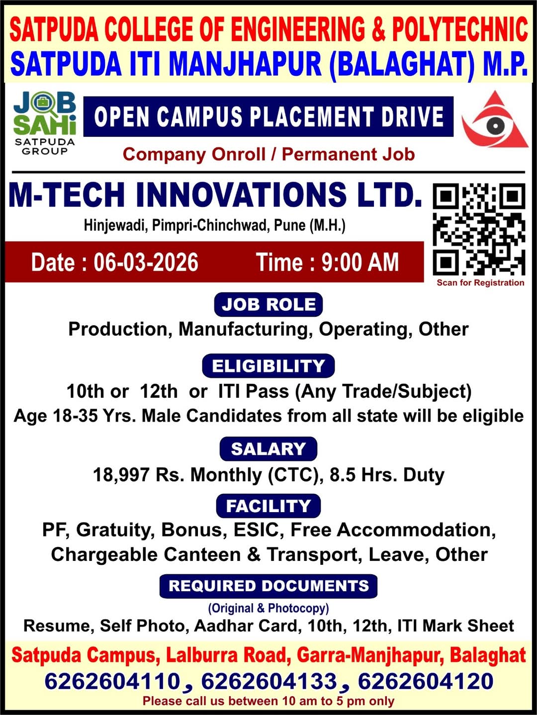 - Venue: SATPUDA ITI MANJHAPUR (BALAGHAT) M.P.