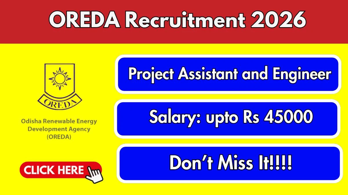 OREDA Recruitment 2026: Odisha Renewable Energy Development Agency (OREDA) has released a notification for recruiting Project Engineer and Project Assistant posts. There are 25 vacancies available for the posts mentioned above. Candidates having ITI, Diploma, or B.E./B.Tech in Electrical and Mechanical Engineering can apply for this post. Eligible candidates can apply offline before the last date 15 April 2026. The detailed eligibility and selection process are explained below.
